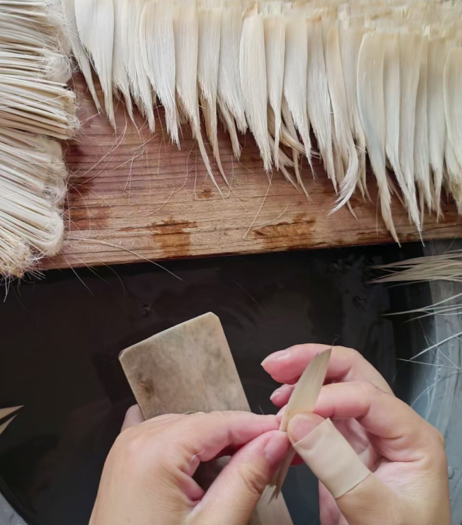 以湖笔为核心,大半田笔坊秉承匠人之心,恪守“三义四德”潜心还原有温度的非遗古法手工制笔,并专注研发与书法创作者气质相符的文房用品。让您在使用“泉堂”品牌毛笔的同时,感受到匠人手作的温度,与湖笔所承载的数百年来中华文人墨客的精神。湖笔制作工艺十分复杂,其制作工序分为3个部分:一是制作笔头部分,主要工序是笔料、水盆、结头:二是加工笔杆部分,主要工序有蒲墩:三是笔头与笔杆装配并总体加工修整部分,主要工序有装套、牛角镶嵌、择笔、刻字。在这些主要工序中,又包含着许多具体的小工序,总计大小工序有100余道之多,其做工精湛,质量考究的湖笔系列产品深受书画爱好者的喜爱。