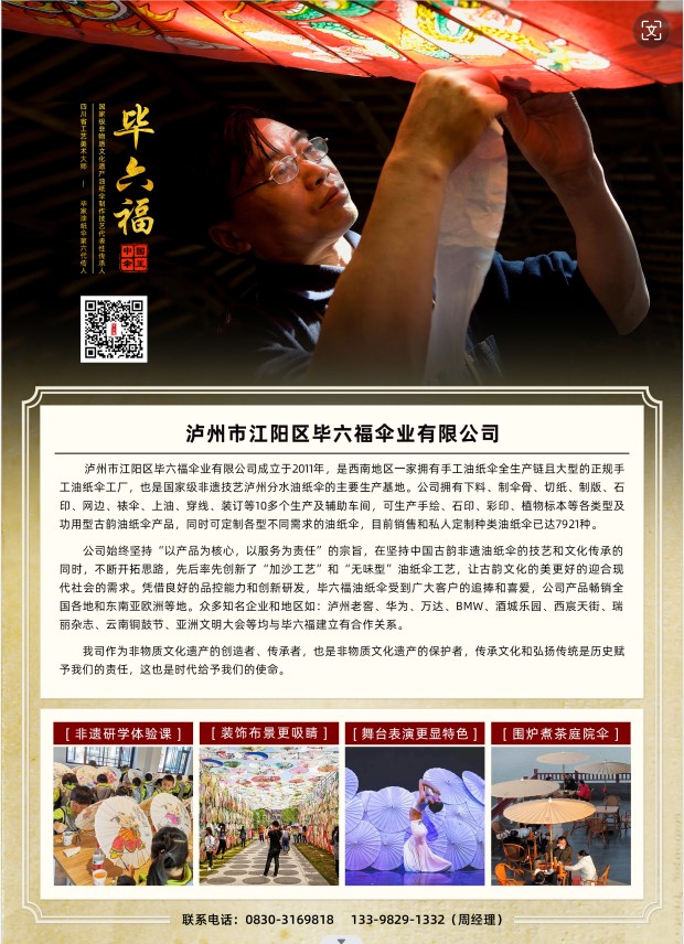 毕六福在油纸伞技艺传承之路上矢志不渝,同时也在油纸伞创新上狠下功夫,2020年,毕六福成功开发出无味桐油伞,成功解决了油纸伞上千年来难闻的桐油异味问题,深受广大用户喜爱;2021年又推出4代伞杆,很好解决了北方干燥环境下油纸伞杆易开裂的问题。经过申遗后十来年的发展,毕六福油纸伞已经成长为业内举足轻重头部品牌,为油纸伞行业的现代发展开辟了新的方向。